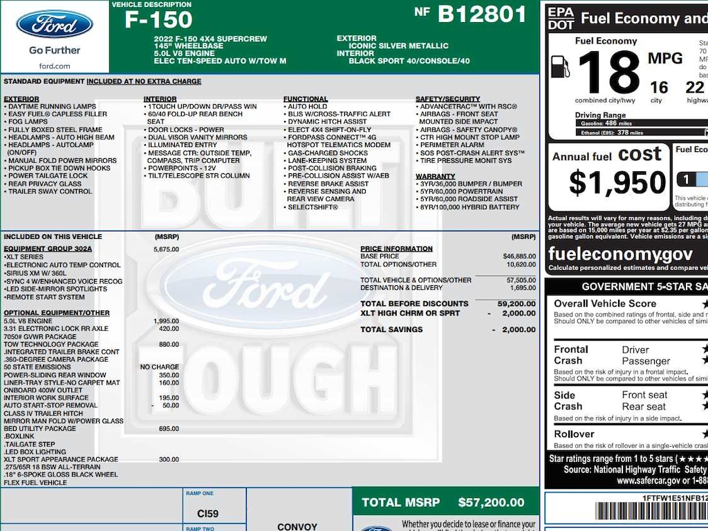 Class IV Trailer Hitch Receiver, towing capability up to TBD lbs, on 3.3L V6 PFDI engine (99B) and 2.7L EcoBoost engine (99P) or up to TBD lbs, on 3.5L EcoBoost engine (998) and 5.0L V8 engine (995), 7/4-pin connector, class IV trailer hitch receiver, smart trailer tow connector ( BLIS w/trailer tow coverage where BLIS is available), XLT Chrome Appearance Package, lower grille trim, Chrome Single-Tip Exhaust, Tires: 275/65R18 BSW Automatic Transmission, Chrome Door & Tailgate Handles w/Body-Color Bezel, bezel on side doors and black on tailgate, Wheels: 18 Chrome-Like PVD, 2-Bar Style Grille w/Chrome 2 Minor Bars, silver painted surround and black background mesh, Bright Polished Step Bars, Zone Lighting, Leather-Wrapped Steering Wheel, Intelligent Access w/Push Button Start, approach detection, SecuriCode, GVWR: 7,050 lbs Payload Package, 3.31 Axle Ratio, smart trailer tow connector and BLIS w/trailer tow coverage where BLIS is available, Integrated Trailer Brake Controller, 360 Degree Camera, trailer reverse guidance, Pro Trailer Backup Assist, BoxLink, 4 premium locking cleats, Zone Lighting, LED Box Lighting, Tailgate Step w/Tailgate Work Surface, body-color wheellip moldings and unique interior finish, Box Side Decals, Chrome Single-Tip Exhaust, Body-Color Door & Tailgate Handles, body-color bezel on side doors and black on tailgate, Tires: 275/65R18 BSW Automatic Transmission, Wheels: 18 6-Spoke Machined Aluminum, gloss black painted pockets, Accent-Color Step Bars, Body-Color Front & Rear Bumpers, body-color front fascia, Black 2-Bar Style Grille w/Black Surround/Accents, ELECTRONIC LOCKING W/3.31 AXLE RATIO, selectable drive modes: normal, ECO, sport, tow/haul, slippery, deep snow/sand and mud/rut (STD).