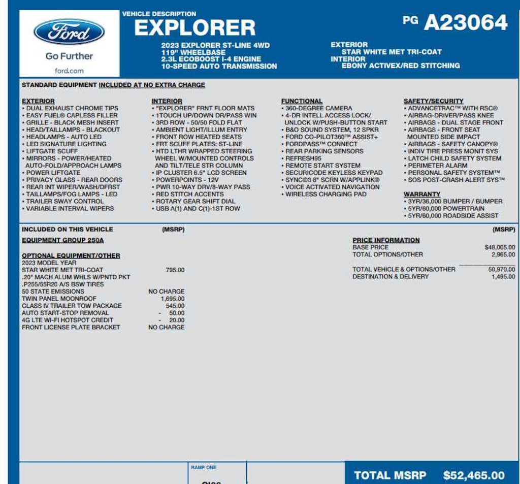remote control front windows (opens front windows from outside of the vehicle via the key fob), CLASS IV TRAILER TOW PACKAGE, (STD).