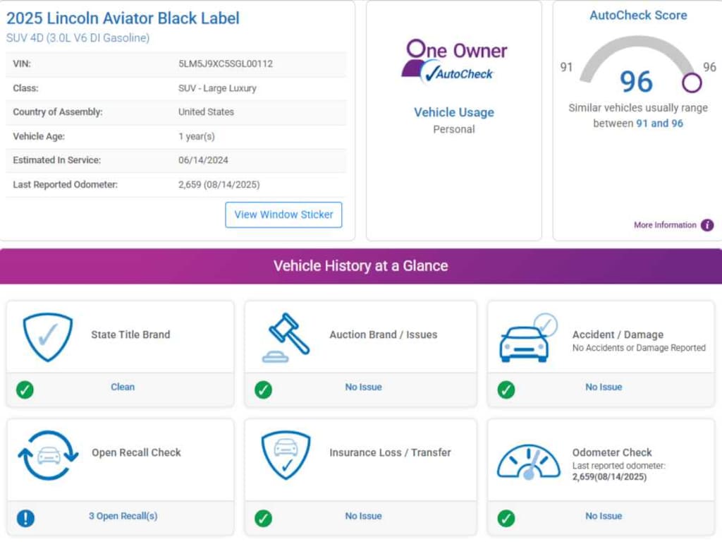 AutoCheck One Owner